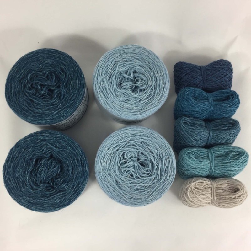 Dette strikkekit indeholder 100 gram Coast Petrol (bundfarve 1), 100 gram Coast Duck Egg (bundfarve 2), 1 stk nuancepakke Coast 05 - samt naturligvis opskriften til Graphic - et strikket babytæppe