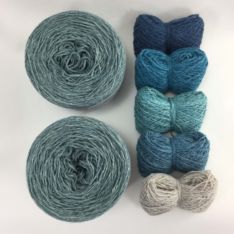 Dette strikkekit indeholder 100 gram Coast Azure, 1 stk nuancepakke Coast 05 - samt naturligvis opskriften til Horison - et tørklæde i perlestrik