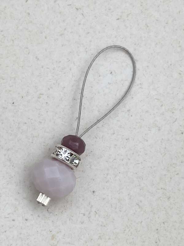 Maskemarkør med lilla glasrondeller og sølv rhinestone rondel på en matchende wire
