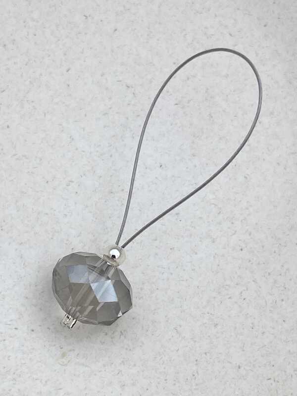Maskemarkører med røgfarvet cut glaskrystal og en lille sølvperle på en sølv wire
