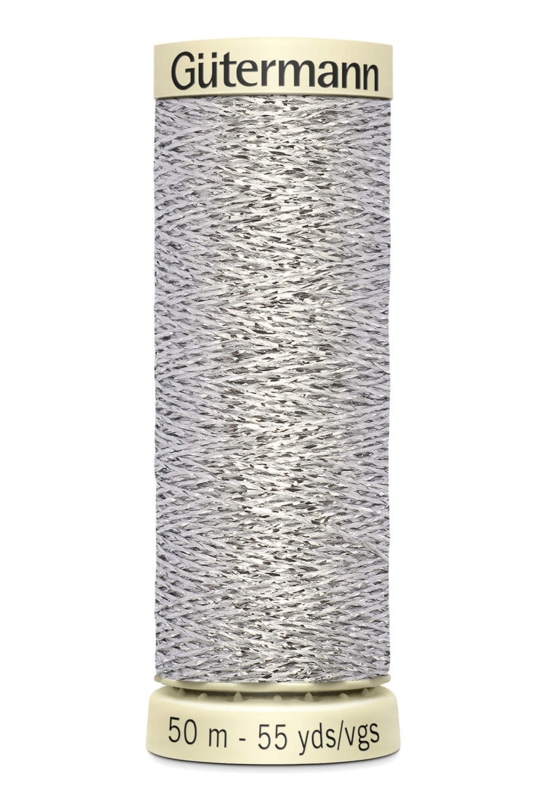 Gütermanns metallic effekttråd, er en meget tynd glimmertråd, der egner sig bedst som følgetråd.