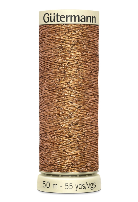 Gütermanns metallic effekttråd, er en meget tynd glimmertråd, der egner sig bedst som følgetråd.